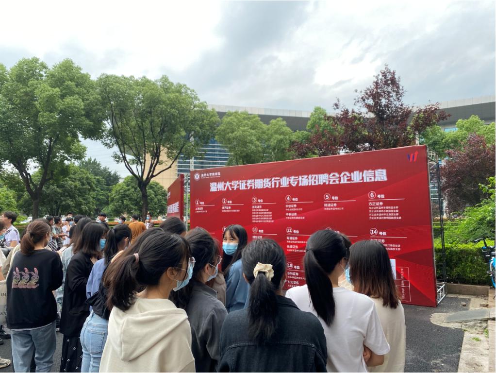 据悉,本次招聘会共吸引了来自温州地区的20多家证券期货机构参加,其中包括上海证券、银河证券、浙商证券、财通证券、中信证券、方正证券、新湖期货等机构。