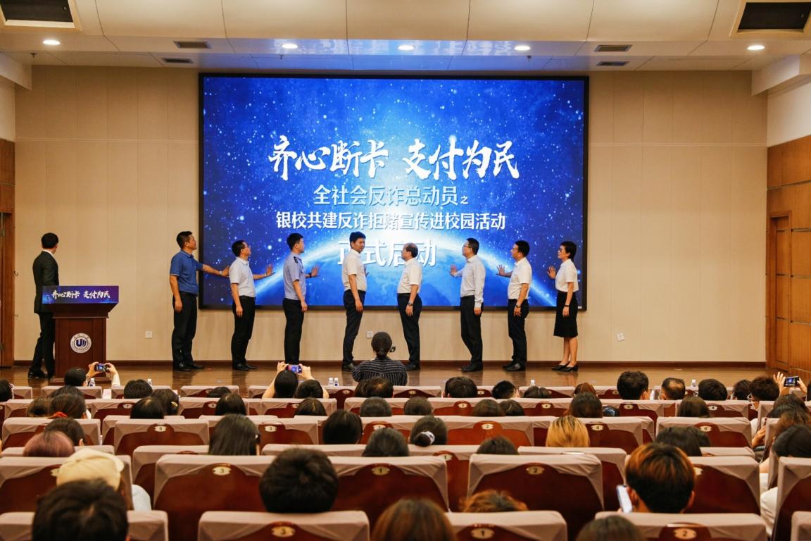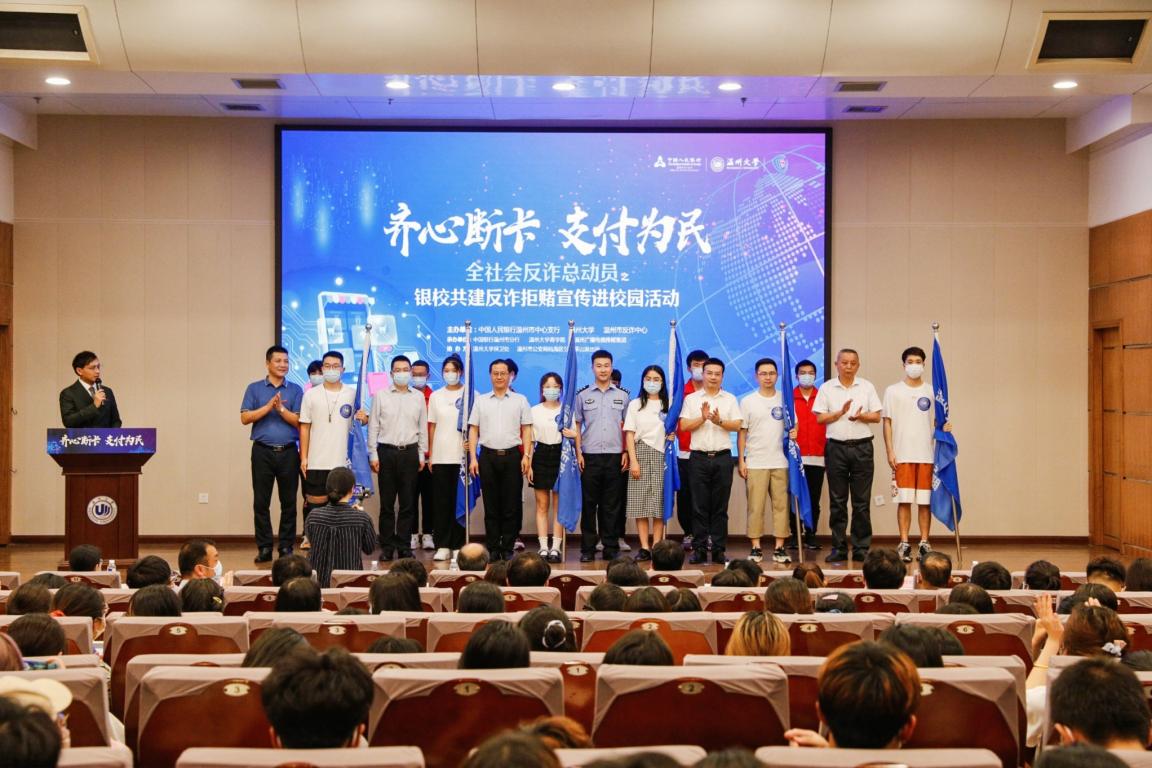 为深入贯彻落实打击治理电信网络新型违法犯罪工作要求,进一步提高师生的反诈意识和识诈能力,切实保障师生群体的资金安全,6月10日晚,温州大学联合中国人民银行温州市中心支行、温州市反诈中心等单位联合举办“齐心断卡支付为民---全社会反诈总动员之银校共建反诈拒赌宣传进校园活动”。