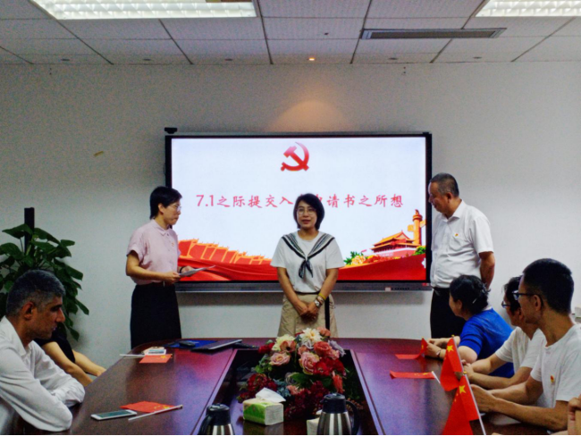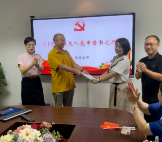 财务管理系系主任、青年博士张烨老师在大家的见证下郑重地向党组织递交了入党申请书。她说,此前,虽然不是党员,但多次感受到学院与系里的党员活动氛围,置身其中,才能理解这个优秀的集体在如何调动每个人的能动性,为国家发展建言献策。特别是疫情之后,更加坚定了自己向党组织靠拢的决心。因为觉得特别有意义,所以也就特意选择在今天递交入党申请书。