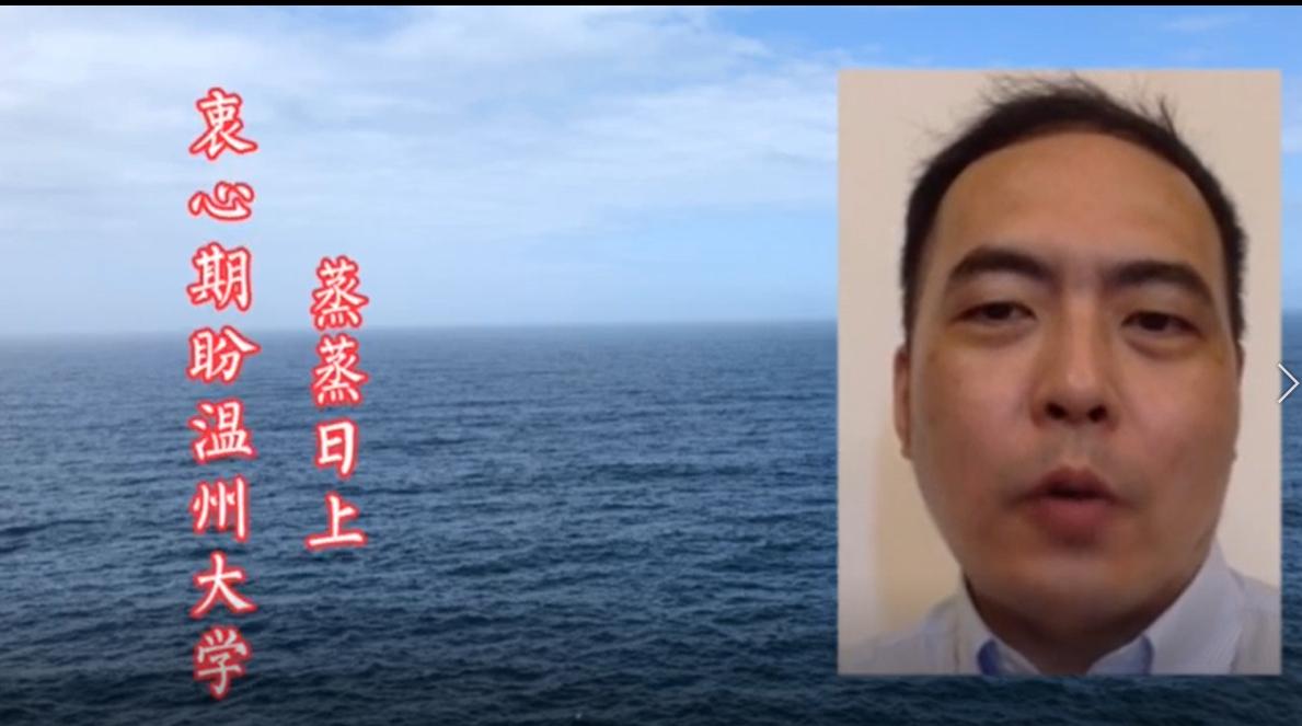 苏琦老师发来了录制的视频,他表示非常荣幸曾经与大家在温州这片热土上并肩前行,他永远为他曾是温州大学的教授而感到骄傲,他祝愿温州大学和香蕉视频