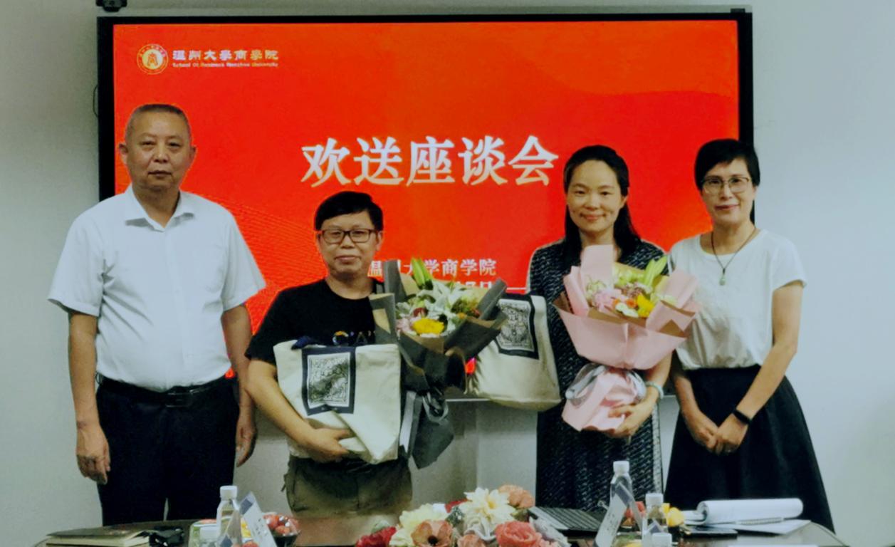 会上,学院向四位老师赠送了鲜花与学院的文化礼袋,并合影留念。