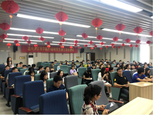 拥有应用经济学一级学科硕士学位点、金融专业硕士学位点和社会主义市场经济理论与实践二级学科硕士学位点,在国内国际同时招收硕士研究生。此外,学院积极为地方经济建设服务,承担了大量的决策咨询工作,研究成果被评为教育部优秀专家建议,多次获得中央部委、浙江省和温州市领导的肯定性批示。接着,胡院长隆重介绍了学院研究生导师,他提醒学生们结合自己的兴趣方向来选择导师。