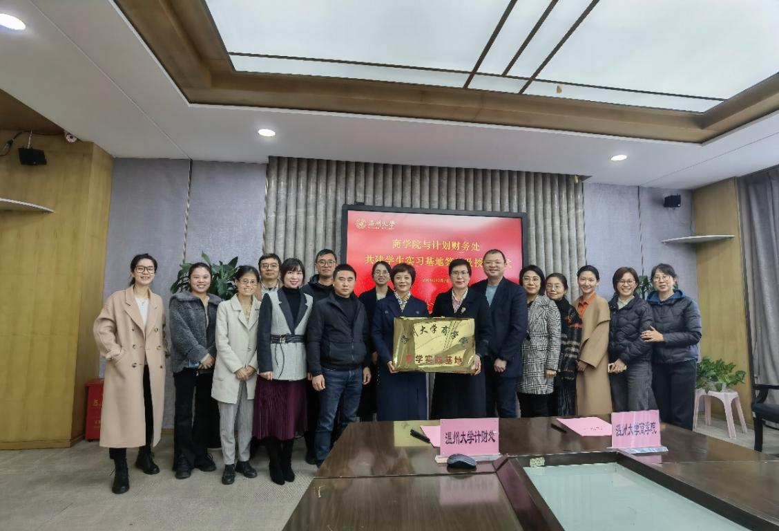 余向前副院长与计财处任瑞璋副处长在友好的气氛下签署实习基地建设协议书,并由郑彩莲书记向陈小敏处长进行基地授牌。参会全员合影留念,此次仪式圆满结束。