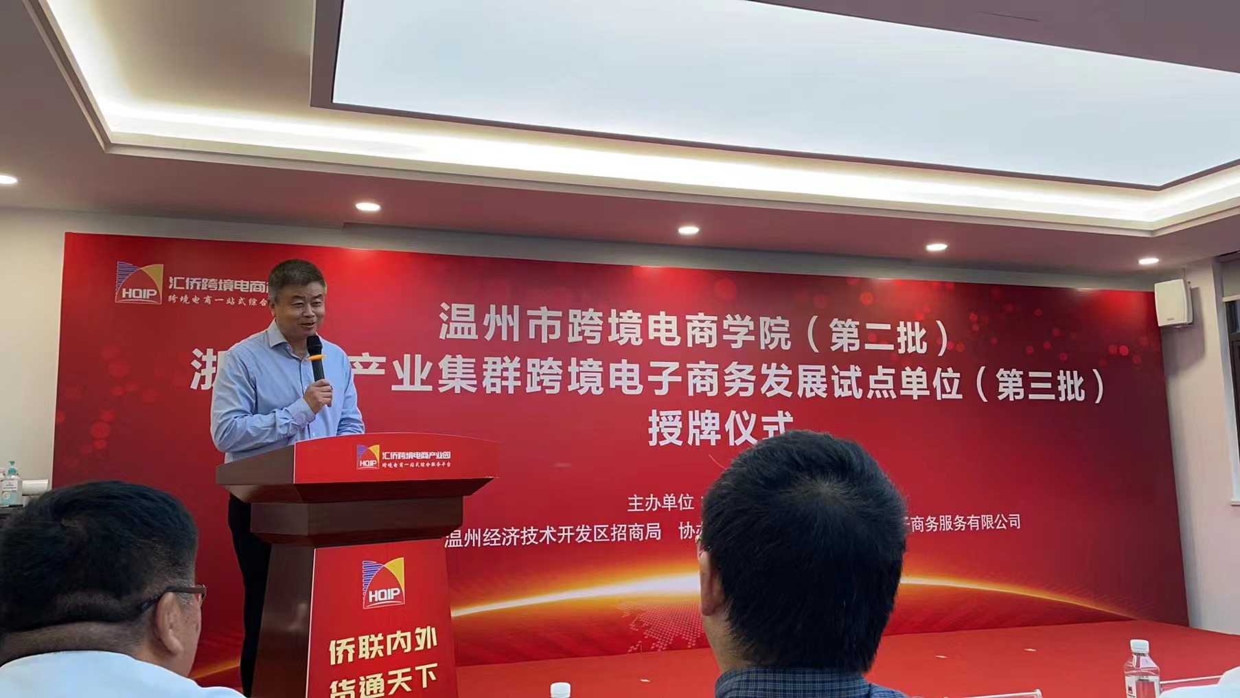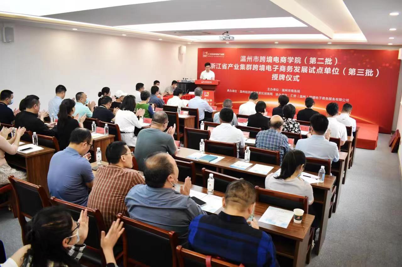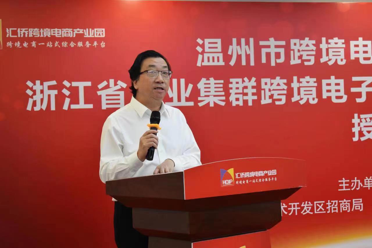 。经开区商务局局长郑季林代表第三批产业集群跨境电商发展试点单位分享争创经验,中国电子温州产业园总经理蒋朝红分享校企合作成功经验。