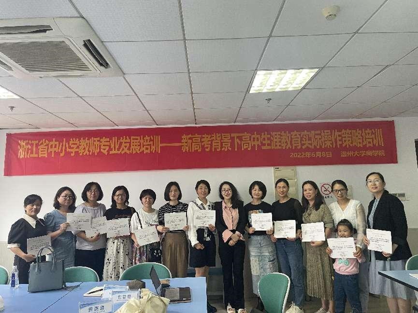 主办的浙江省中小学教师专业发展培训《新高考背景下高中生涯教育实际操作策略》在温州大学北校区瓯7-805教室顺利举行。培训为期五天,温州各县市区中学老师共计40余人参加了此次培训。内容包括职业生涯规划、就业理论指导、中学生涯教育、新高考政策咨询和志愿填报等辅导工作等。培训结合专题讲座、课堂授课、指导观摩、互动交流等形式。