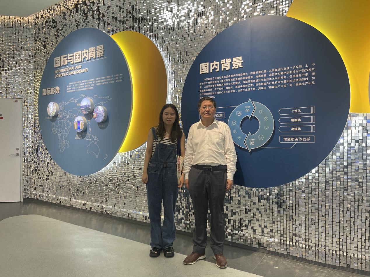 在参观过程中,引导员将小镇与眼镜的历史娓娓道来,那代人默默努力的身影浮现在我们眼前。接着又亲切且全面地向我们讲解了展厅的布局,这个特色街区以“前店后厂”为经营体系,主打中高端眼镜产品。企业批发兼零售一体化的模式商圈,吸引了众多游客前来参观购买其产品。之后,我们又来到了“丽视光学”进行进一步的调研。这是一家规模可观的眼镜店,通过讲解我们了解到其供应链一体化程度较高。