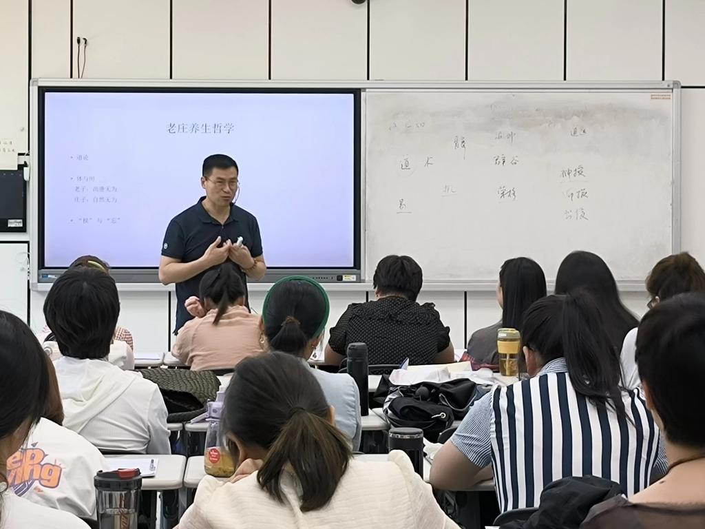 培训第一天,毛华配老师为学员们带来《心学传统与超个人心理学》专题讲座。毛教授从超个人心理学出发,结合老庄养生哲学,深入分析坐忘体道与心理疗愈及其三种方式。他强调,教师心性的成熟与自我发展的水平决定其精神超拔的高度、人格的健全、良好的自我管理和心理适应能力、和谐的师生关系、有效的情绪管理以及充足的幸福感等。心学传统对这一需求提供了充足的知识养分,特别是习近平总书记提倡的“文化自信”“文化创新”的背景下,汲取优秀传统文化的养分,进而在教育教学中创新应用尤为重要。