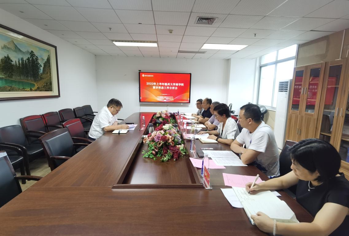 为了更好地贯彻落实“党要管党、从严治党”政治责任,深入推动意识形态工作与教学、科研、管理等各项工作相融合,根据《浙江省党委(党组)意识形态工作责任制实施办法》《温州大学意识形态工作责任制实施办法》《温州大学网络意识形态工作责任制实施办法》精神,加强和改进党对意识形态工作的领导,我院党委于2022年7月1日下午召开2022年上半年意识形态工作分析会,分析会由党委书记郑彩莲主持,院长胡振华、副书记唐华、副院长余向前等出席,纪委委员张素琴列席了分析会,温州大学校长赵敏全程参加指导会议。