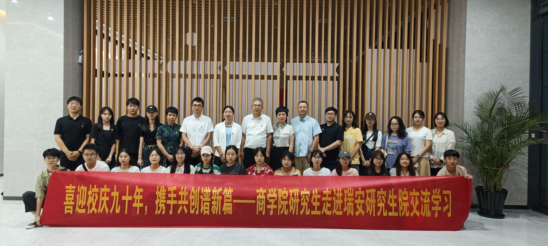 师生一行前往温州大学瑞安研究生院交流学习。学院党委书记李密、副院长余向前、副院长陈文芝、院长助理方嘉奇、辅导员王景欣以及25名研究生代表参加此次活动。
