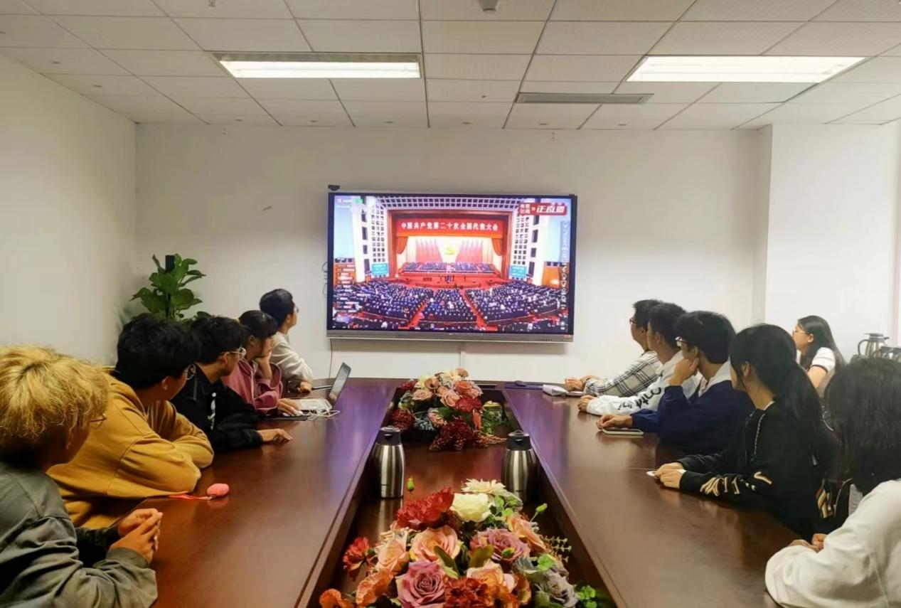 学生党员服务中心全体成员齐聚A222会议室集体观看中国共产党第二十次全国代表大会开幕会直播。