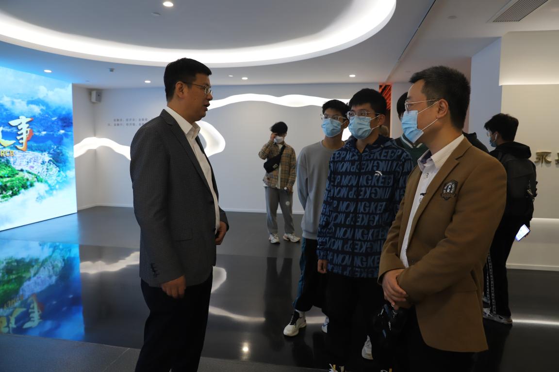 永嘉农商银行总部大楼外部观感高大简洁,上部23层,下部2层的高度设计,恰如其扎实守本心,意欲展宏图的决心。作为一栋综合性大楼,1楼为智能服务与银行业务办理地,专业及其现代化的讲述让学生们体会到银行的业务与创新。