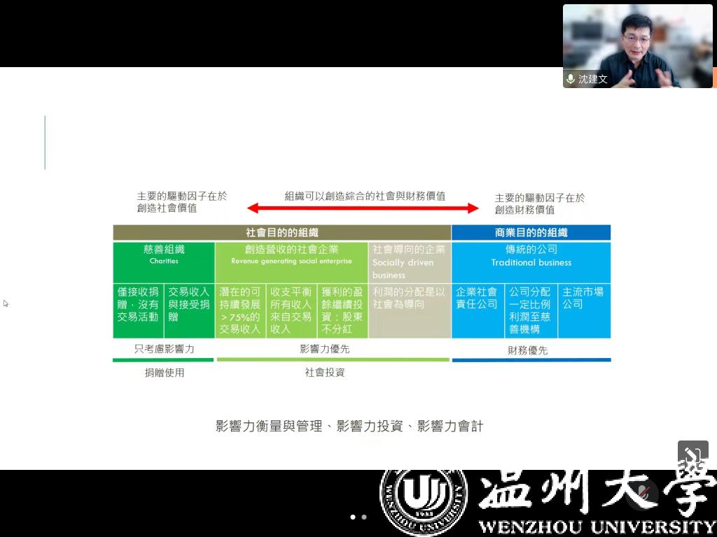 接着,沈教授强调社会型企业在发展过程中要关注企业自身的影响力,这样才能创造出综合的财务与社会价值。