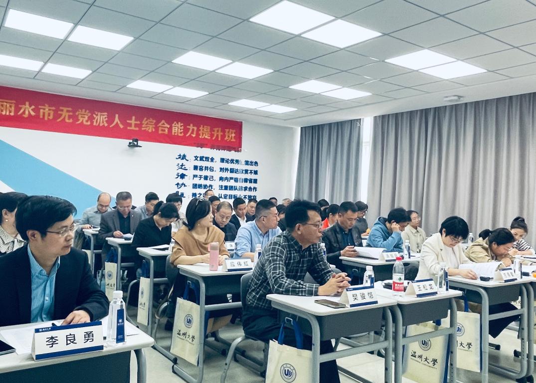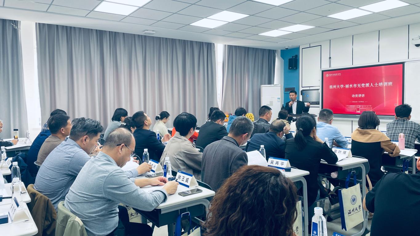 主办的丽水市无党派人士培训班在温州大学北校区北2-405教室顺利举行。培训为期3.5天,丽水市无党派人士共计35余人参加了此次培训。内容包括无党派人士综合素养提升、基本理论与政治制度、市情研究与建言咨政、二十大工作报告解读等。培训结合专题讲座、课堂授课、实践参观、互动交流等形式。