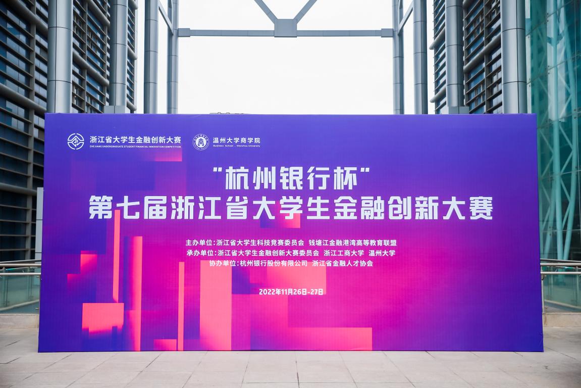 11月27日,由浙江省大学生科技竞赛委员会、钱塘江金融港湾高等教育联盟主办,浙江省大学生金融创新大赛委员会、浙江工商大学和温州大学承办,杭州银行股份有限公司和浙江省金融人才协会协办的“杭州银行杯”第七届浙江省大学生金融创新大赛在温州大学顺利举行。