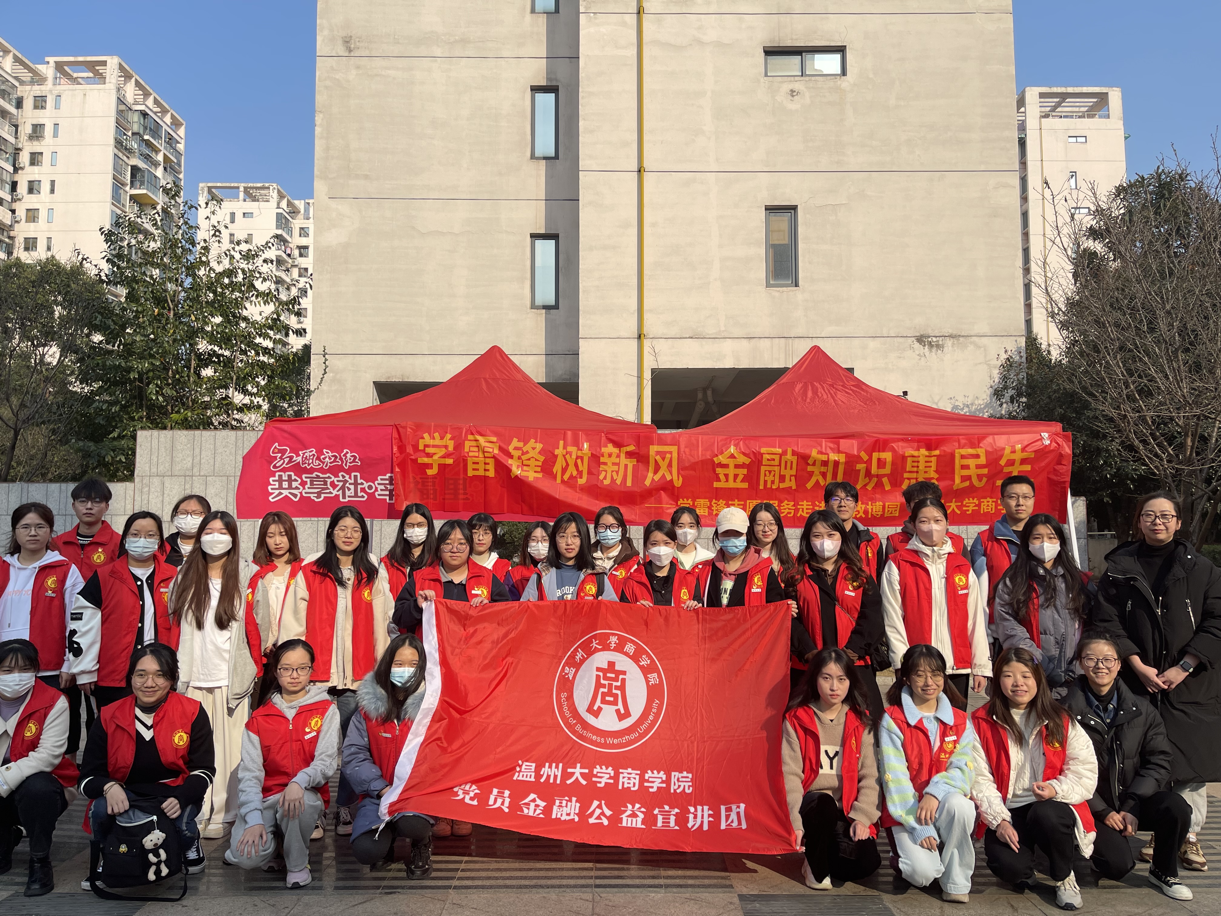 与温州医科大学临床医学院的学生党员们赴博园社区、茶山村等地开展“金融防诈骗,爱心送健康”主题志愿服务活动,为社区居民普及金融知识,提供医疗健康服务。