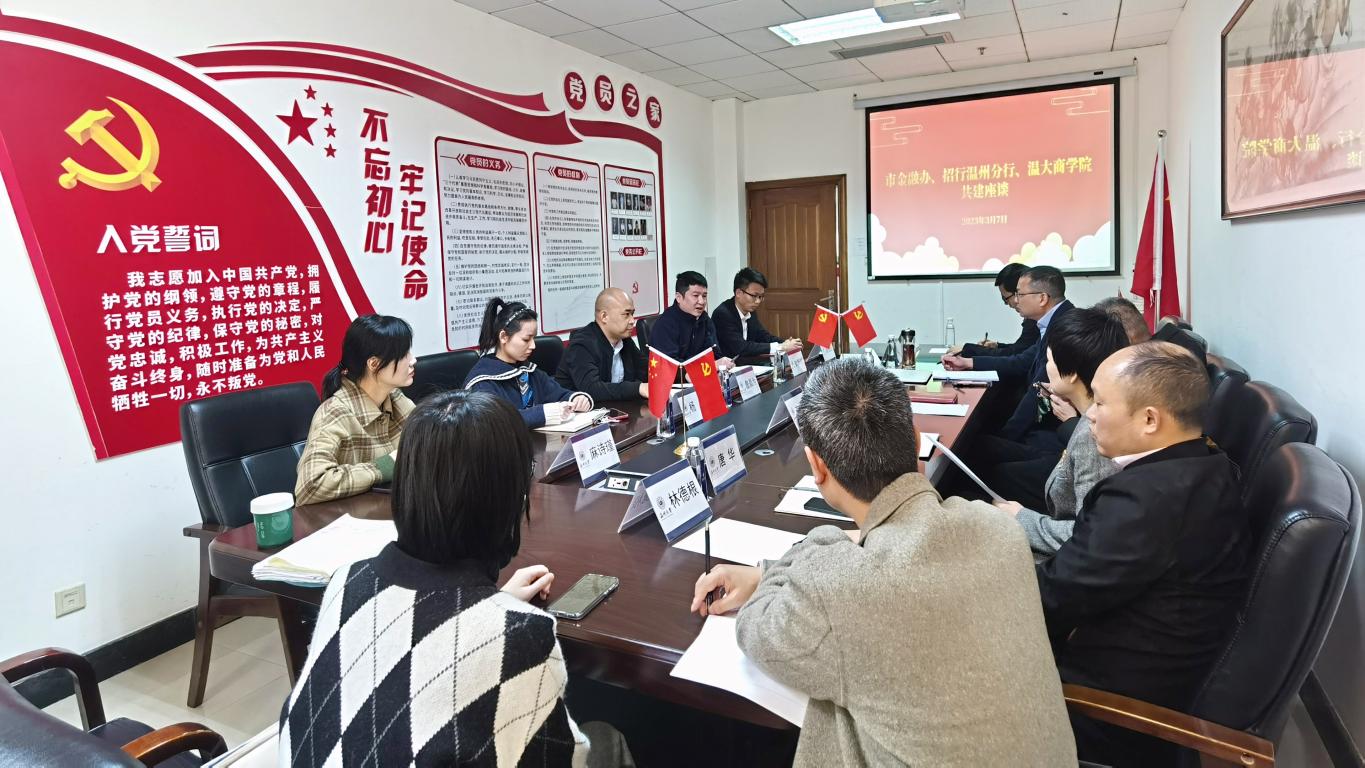 2023年3月7日上午,温州市金融办金融稳定处处长詹昌为等一行2人、招商银行温州分行零售金融事业部总经理刘斯时等一行3人来我院调研交流。香蕉视频