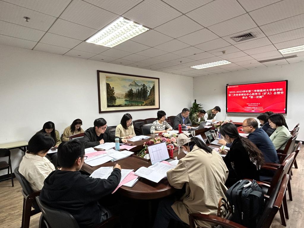 2022-2023学年第二学期党委会“第一议题”和理论中心组学习(扩大)会在A222会议室召开。院领导班子成员、党委委员、纪委委员、支部书记及各科室负责人参会,会议由党委书记李密主持。