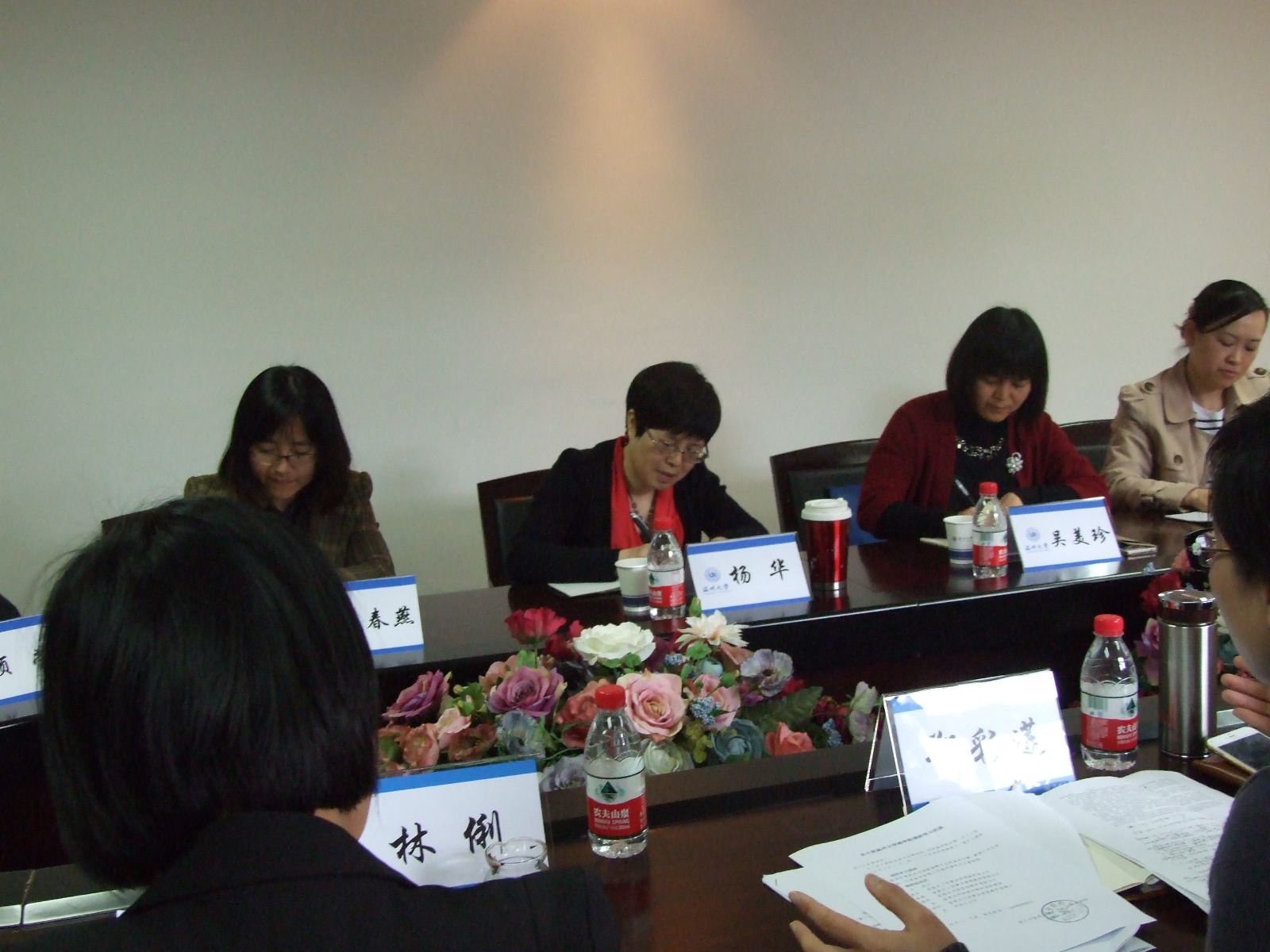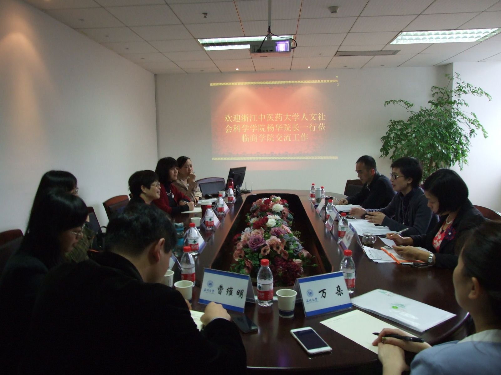 近日,浙江中医药大学人文社会科学学院杨华院长等一行莅临我院做工作交流,我院书记郑彩莲、副院长林俐、罗建利等参加调研会议。