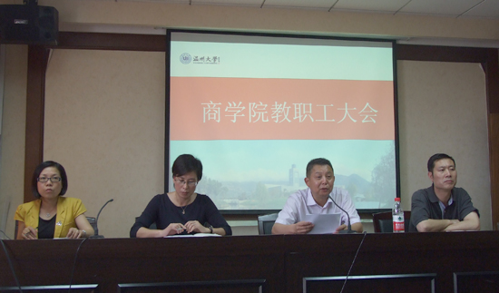 历任领导在学院发展的各个方面都做出了重要的贡献并取得了显著的成绩,她表示将更尽快适应新环境,成为商院人,向各位老师学习,全面配合班子成员,立足“书记抓党建”,服务于人才培养和学科、科研建设,努力营造学院团结友爱的氛围,让大家舒心工作,感受到大家庭的温暖。