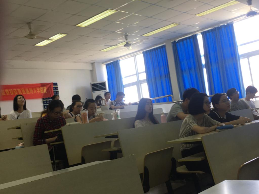 为了更好地让各温州大学的学生了解今年大赛及取得更好成绩,2018年5月16日,浙江省大学生证券投资委员会派出以同花顺饶龙朋为领队、同花顺马特、东北证券陈玉玺、柯景挺等为成员的专家组来香蕉视频