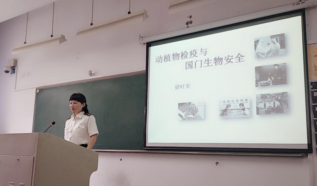 然后,温州市出入境检验检疫局的食品处和动植物国防检疫局的专家董晓慧老师给我们带来一场别开生面的“生物课”,老师通过举例大量危险动植物入侵我国的案例,一方面也警示了我们出国在外要避免失误携带违禁物品,一方面也让我们辨别哪些是危险物品,让我们受益匪浅。