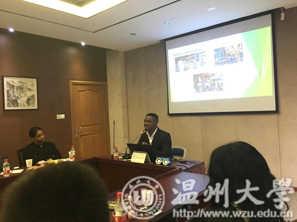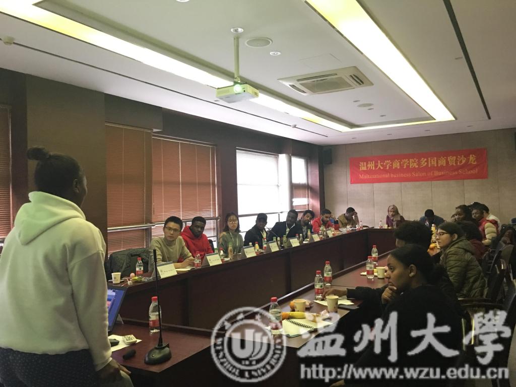 十分荣幸,第一届贸易沙龙自宣传阶段开始就成功吸引到了来自温州大学、温州医科大学以及温州肯恩大学三个院校的众多学生。在这个明媚的下午,三校学生代表齐聚一堂,来自新加坡,埃塞俄比亚,坦桑尼亚等多个国家的留学生们毫不吝啬地与大家一同分享自己国家的商务贸易现状,一起剖析现存的问题,探讨可能的解决方案,以及探索未来的发展方向。更有学生代表为大家带来了关于一带一路的商贸分享。