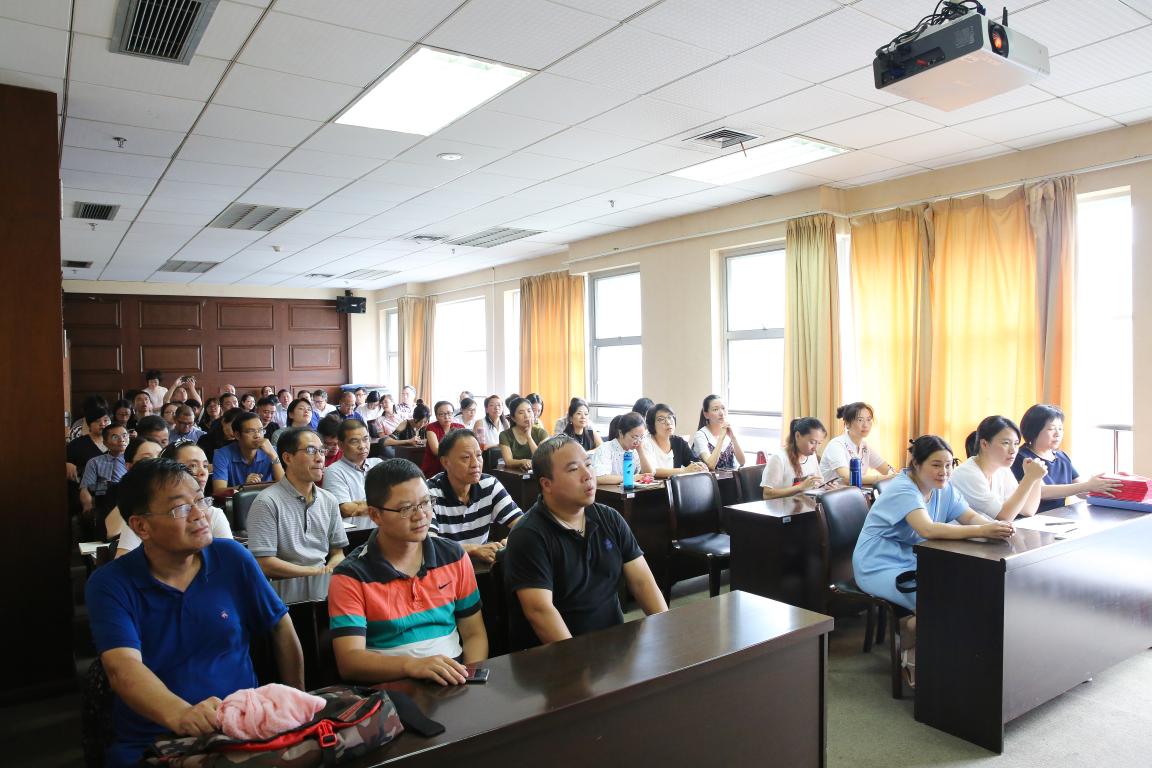 全体教职工在A301会议室集中学习贯彻落实学校暑期党委理论中心组(扩大)学习会精神,学习会由郑彩莲书记主讲。