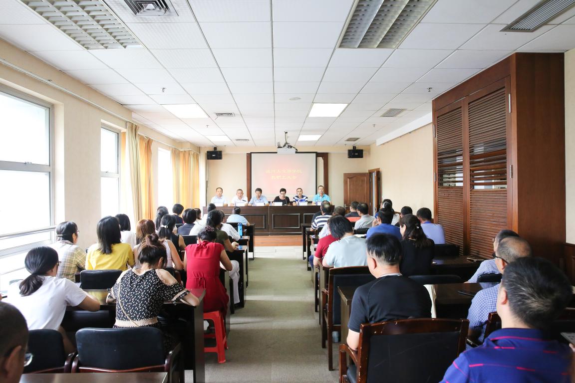 唐华副书记通报了2019级新生的招生和2018届毕业生就业的情况,经过各系主任和全体老师的共同努力,今年学院本科招生录取的一段率为95%,招收研究生27名;就业质量有了明显提高,考研率为近3年新高,本科生初次就业率为96.2%,研究生初次就业率为92.31%,升学出国率10.69%;同时部署了本学期队学风教风建设、考研和学科竞赛、安全稳定、纪检监察工作和工会工作重点。