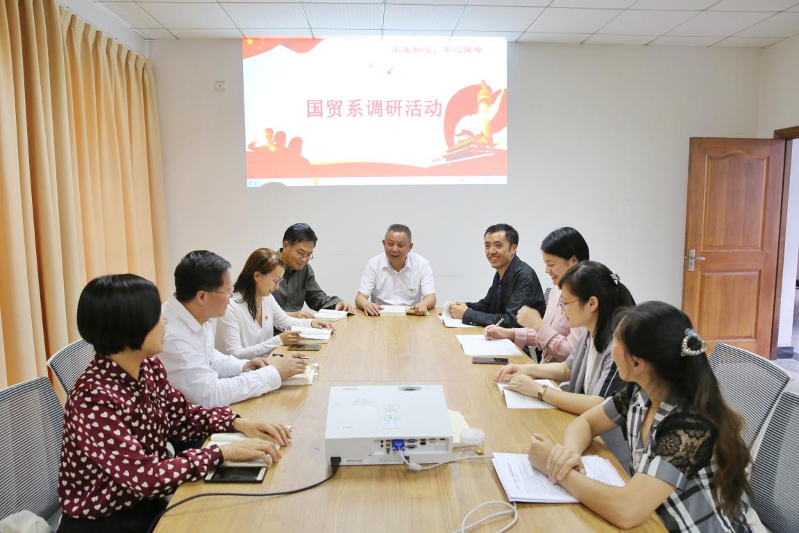 院长胡振华来到国贸系A308会议室开展主题调研活动,国贸系全体教师参加了调研会。