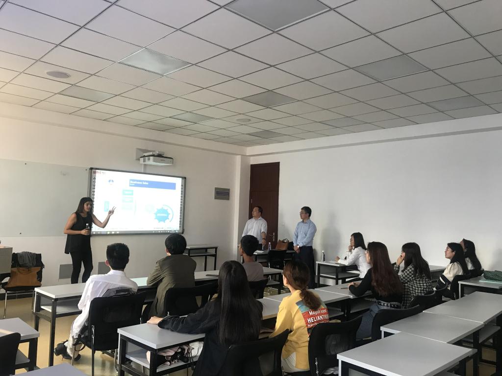 会谈之后ARIANNA女士一行来到我院3号楼教室与有意向学生进行了面对面的项目推广介绍,对卡托利卡大学的课程设置及教学特征、招生要求等内容进行了详细解说,学生也就意大利的学习生活等问题向ARIANNA女士进行现场咨询沟通。
