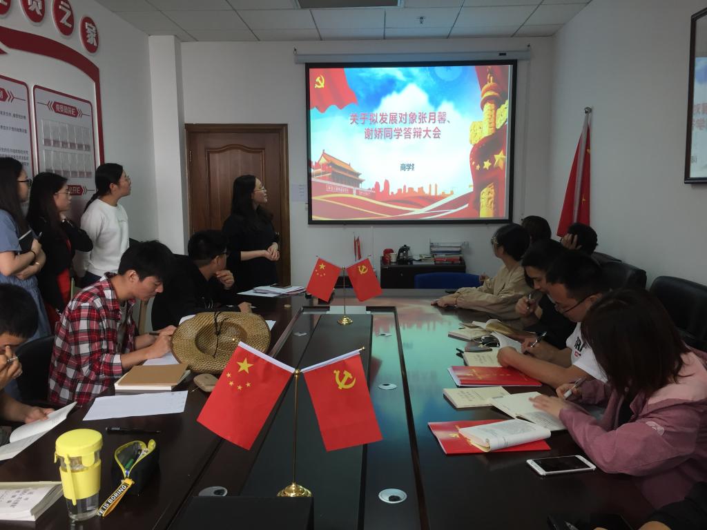 紧接着,大会进行第二项议程——关于拟发展对象张月馨、谢娇同学答辩大会,此次答辩大会由张静茹同志主持,由金伟男同志和李泽浩同志分别负责表决的监票和计票,本次大会实到党员15名,其中正式党员11名,预备党员4名,可进行有效的表决大会。大会首先由支部书记韩新华老师传达了本次大会的基本要求。随后谢娇、张月馨两位同学分别向支部成员就思想、生活、学习和工作等方面做出自我介绍,培养联系人就两位同学一年以来的培养和考察情况向党组织进行了汇报。紧接着由周围同学、室友和在座党员就其可能存在的不足进行提问,两位同学对各个问题都做出了坦诚的回答。最后,在座党员同志根据两位同学的表现进行了投票表决。整个会议持续了一个小时左右,流程规范,气氛庄重。