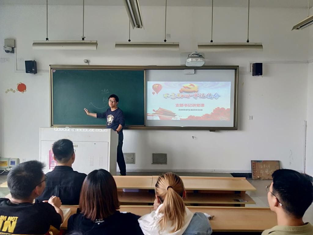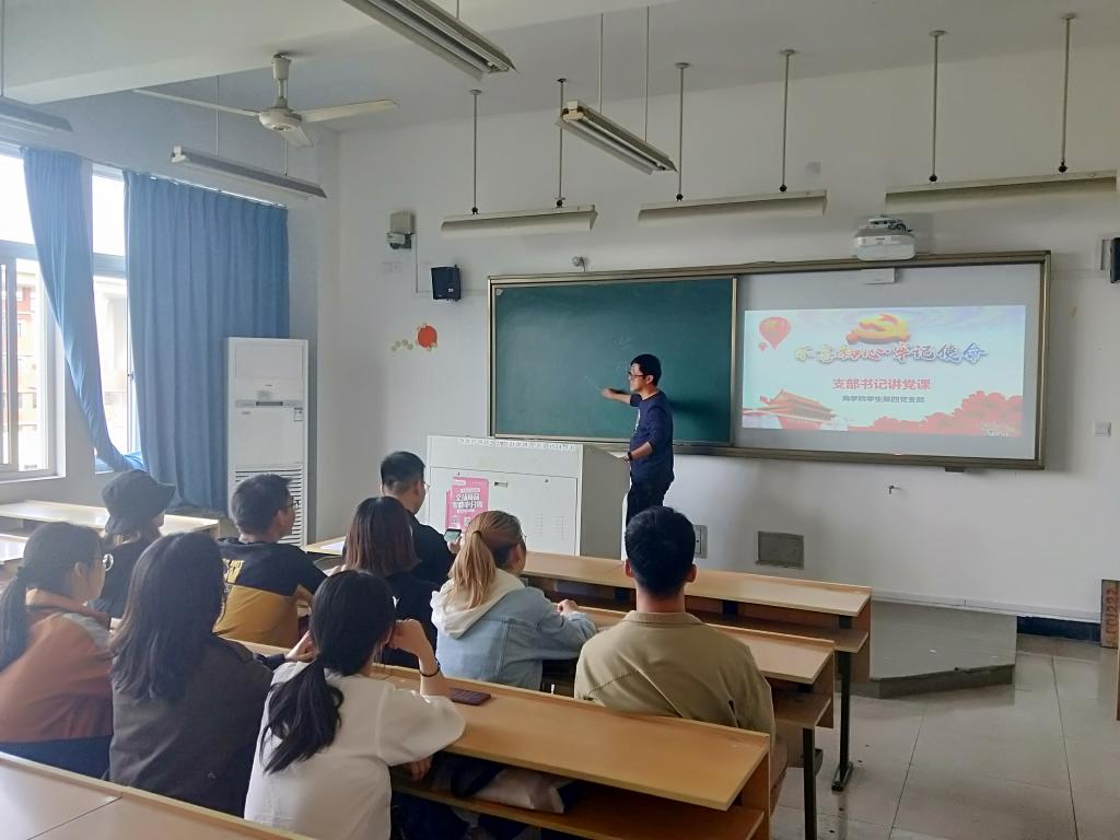 学生第四党支部全体党员在北3-406听支部书记黄汉老师讲《党的光辉历史和优良传统》党课。