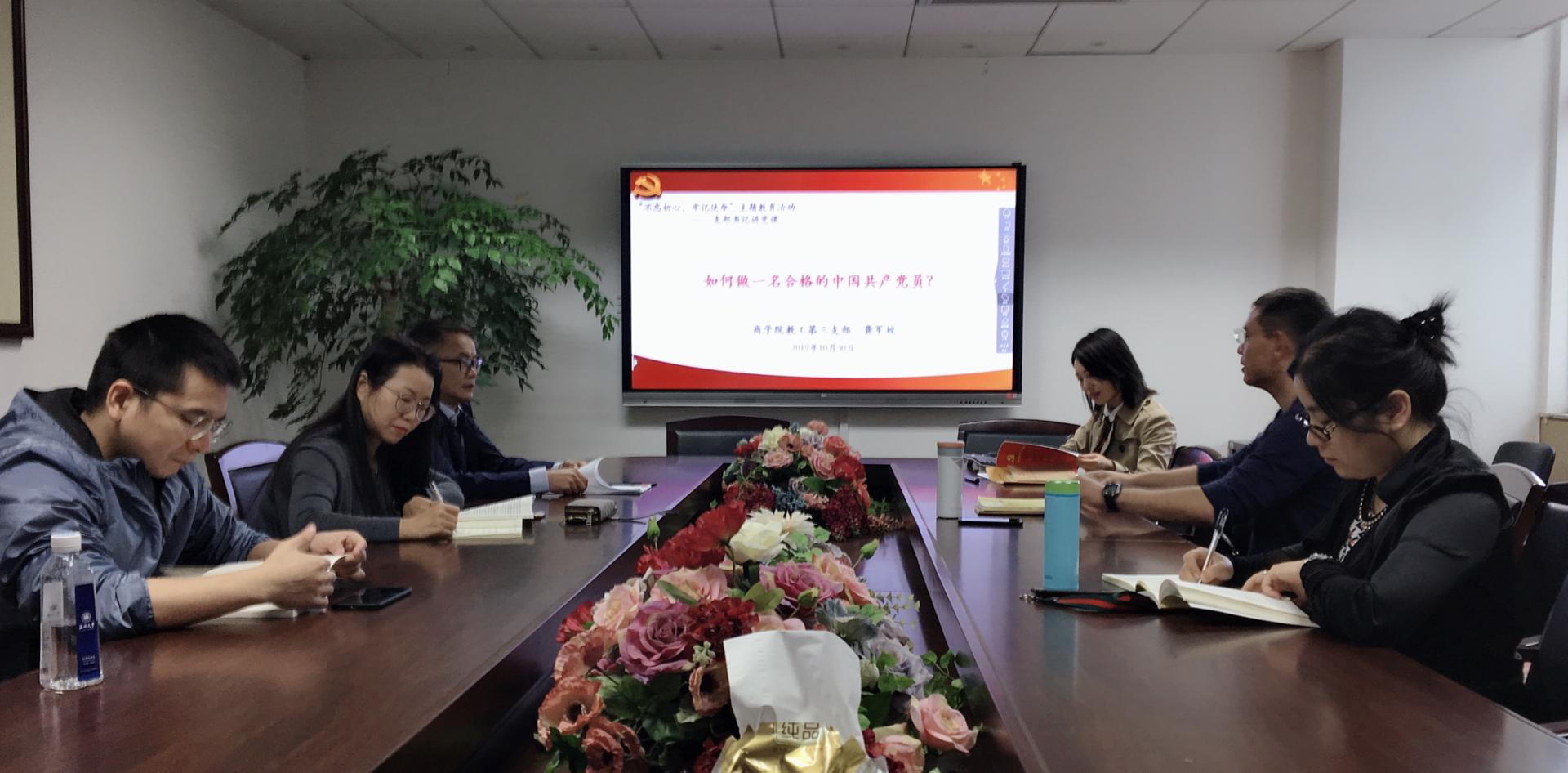 10月30日下午,秋高气爽,香蕉视频 教工第三支部(市销系)书记龚军姣老师召集支部会议。不仅向大家传达她多日培训进修的会议精神,而且根据“不忘初心,牢记使命”主题教育学习活动的安排,特意为我们支部准备了一场“如何做一名合格的中国共产党员”专题报告,支部成员围绕着“乐于自我奉献、勇于坚定信念、敢于自我革命”三个层面进行了学习和探讨,对做一名合格的中国共产党员,有了更深刻的理解——以人民为中心,始终把人民利益放在第一位。