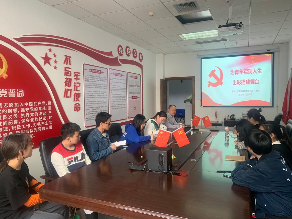 党委副书记唐华老师在党员之家主讲《为青年实现人生出彩搭建舞台》的主题党课,全体学生支部支委成员出席并认真学习观摩。