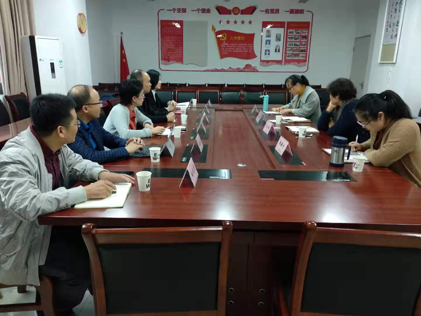 为进一步巩固“不忘初心、牢记使命”主题教育成效,根据学院党委安排部署,聚焦“守初心、担使命、找差距、抓落实”总要求,确保主题教育高起点开局、高标准开展、高质量推进,11月12日,学院党委书记郑彩莲会同党委副书记唐华,党委委员、教工第一党支部书记周建华,国际生专业负责人王露,实训中心实验员白延虎,辅导员黄汉一行六人赴重庆工商大学经济学院走访调研。