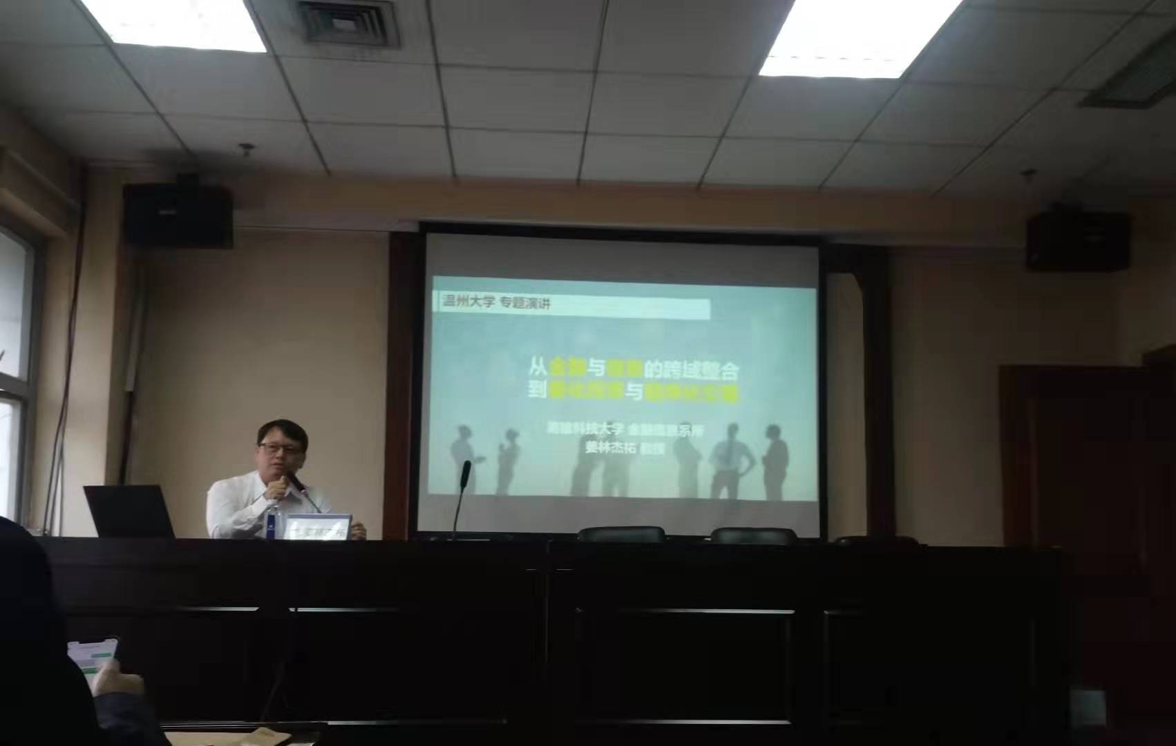 2019年10月27日下午1:30到3:00,高雄科技大学金融信息所所长姜林杰祐教授应邀来我院讲学,在商学会议室A301作了题为“从金融与讯息的跨域整合,到量化投资与程序化交易”的学术报告。报告会由姜林杰祐教授主讲,香蕉视频